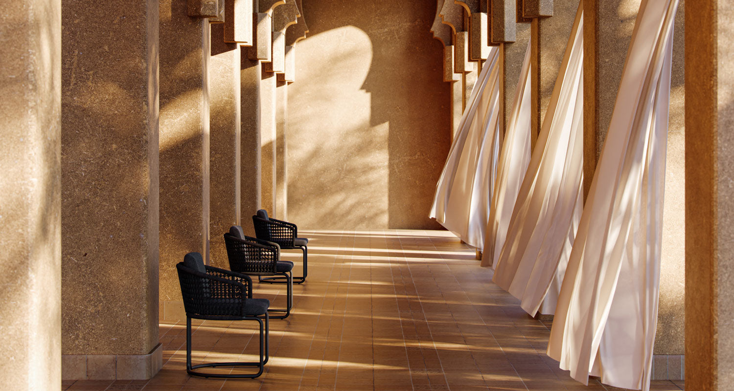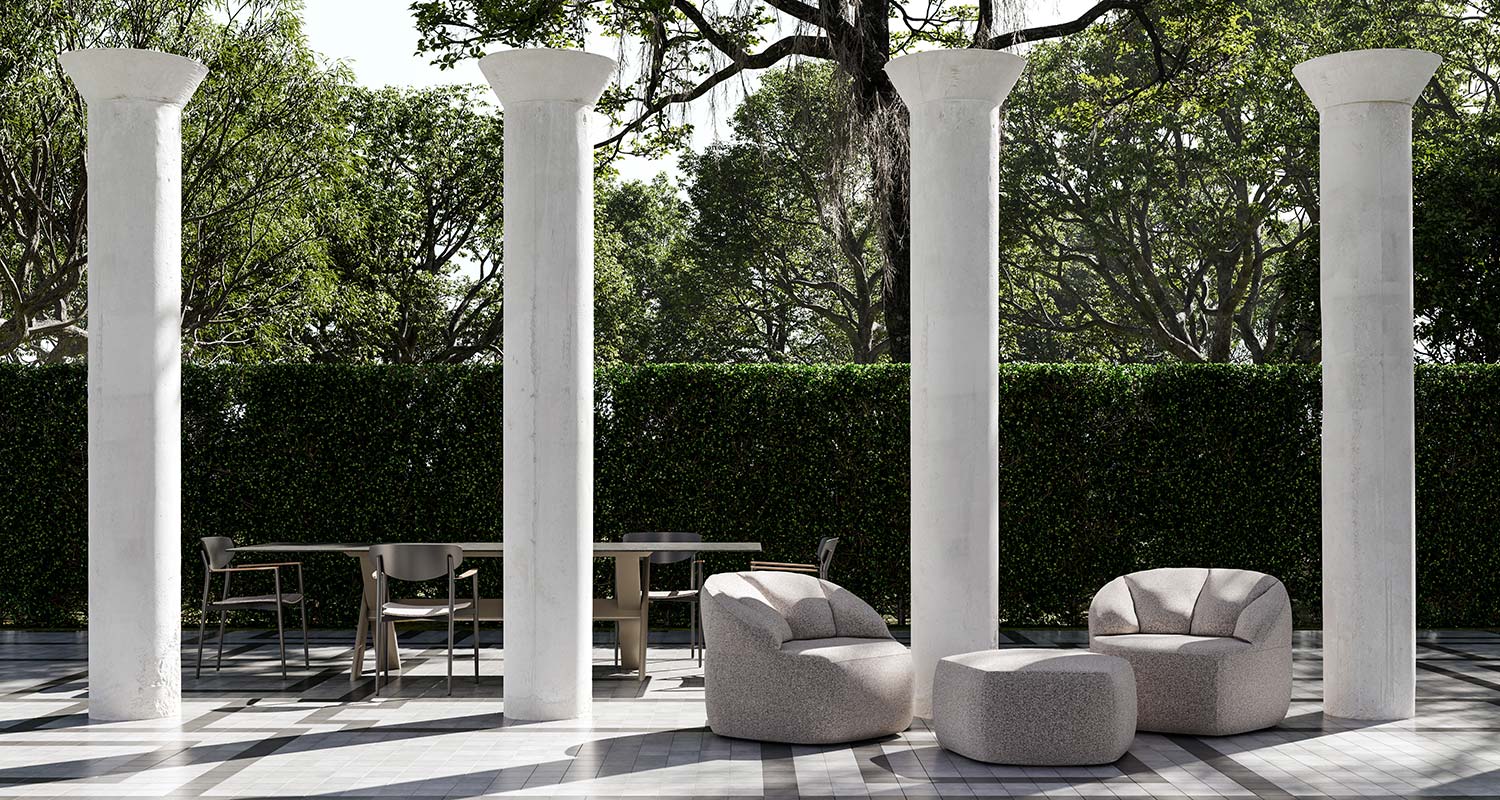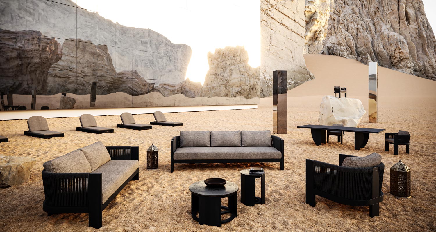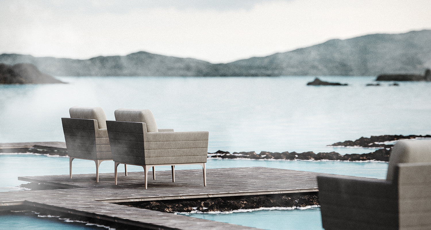 highlight and echo the volcanic vista, conjuring harmony with the water, land, weather and light.