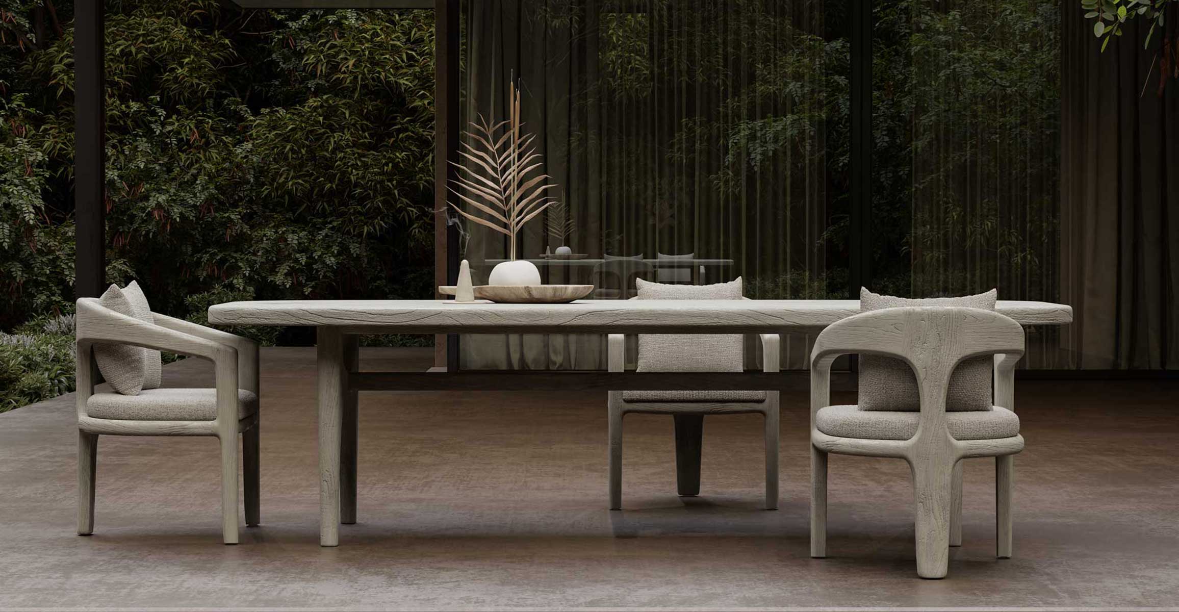 Koleksiyonun dikey çizgileri, balina iskeletinin güçlü yapısını yansıtarak diğer parçalara da modern bir görünüm kazandırıyor. Ayrıca, karakteristik siyah Teak ağacı ve natürel tonlardaki Teak ağacı kullanımı, her parçanın mekana kolayca entegre olmasını sağlıyor.