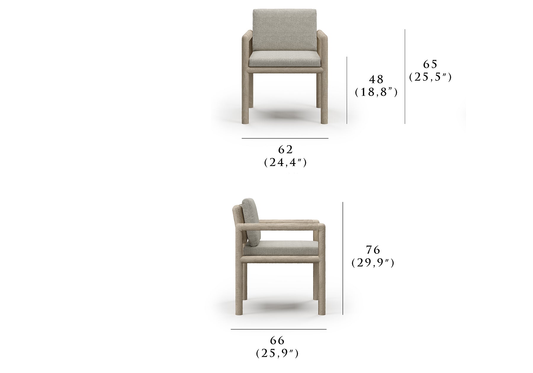 Kollu Sandalye: 62 cm x 66 cm x 76 cm