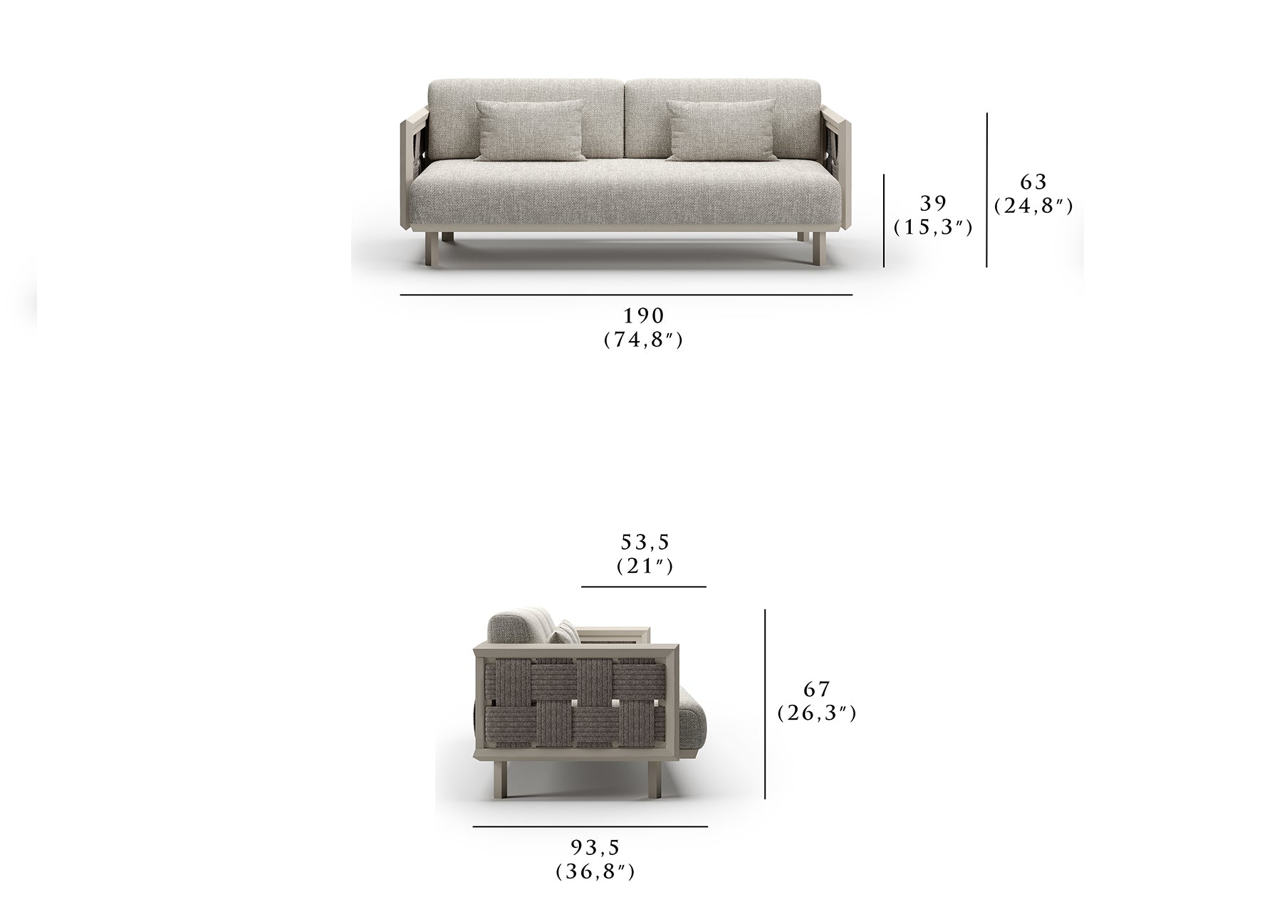 Éclat İkili Kanepe: 190 cm x 93,5 cm x 67 cm