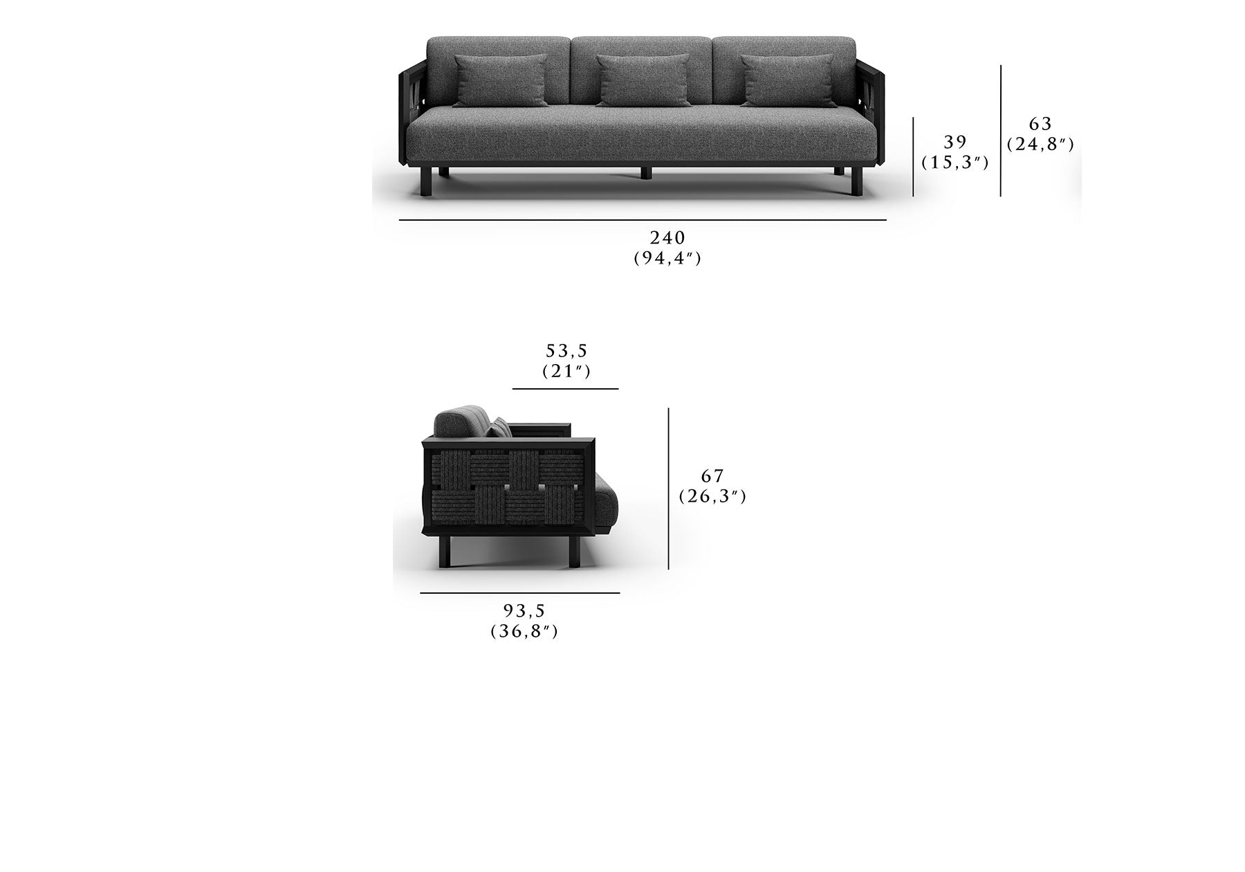 Éclat Üçlü Kanepe: 240 cm x 93,5 cm x 67 cm