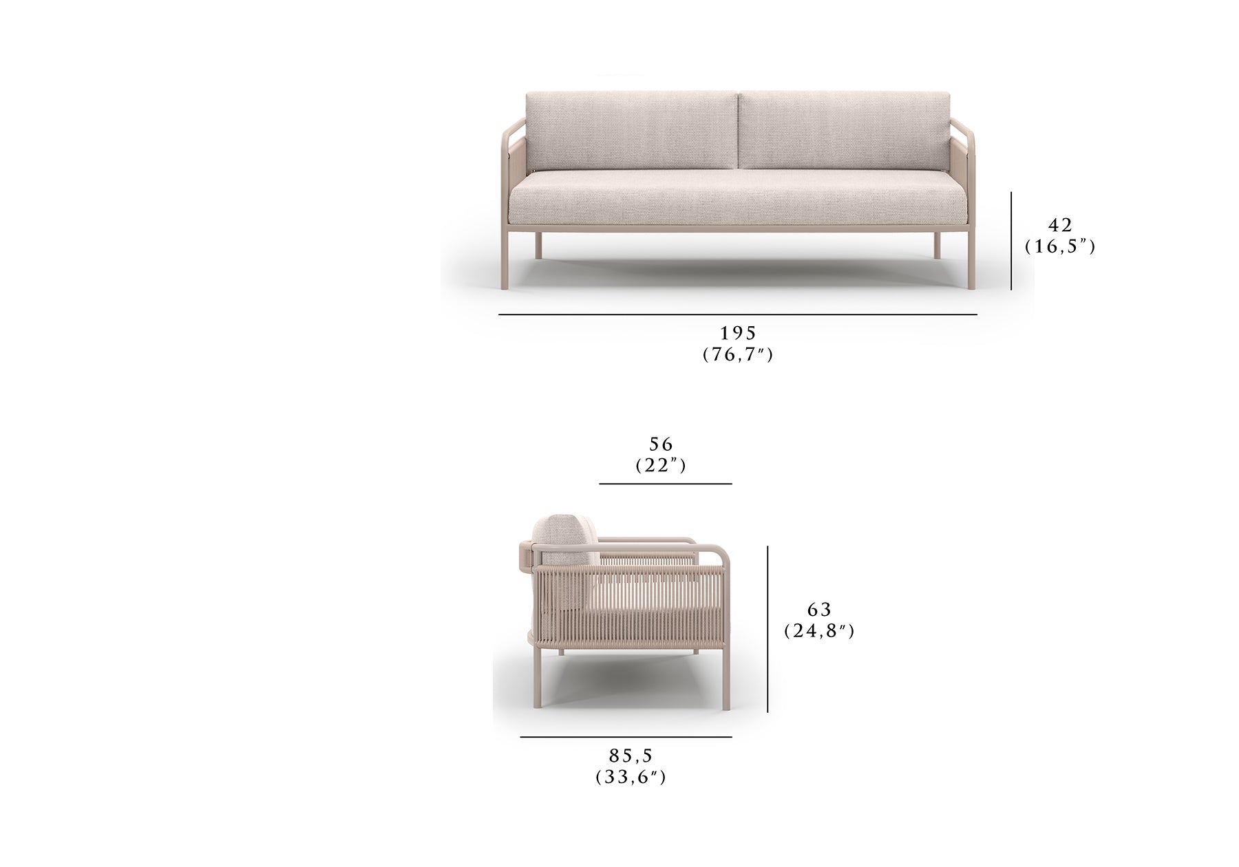 İkili Kanepe: 195 cm x 85,5 cm x 63cm