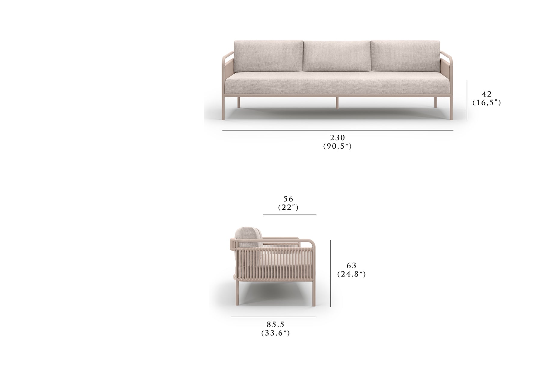 Üçlü Kanepe: 230 cm x 85,5 cm x 63 cm