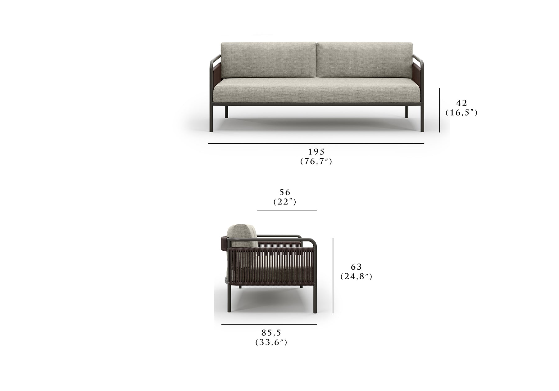 İkili Kanepe: 195 cm x 85,5 cm x 63cm