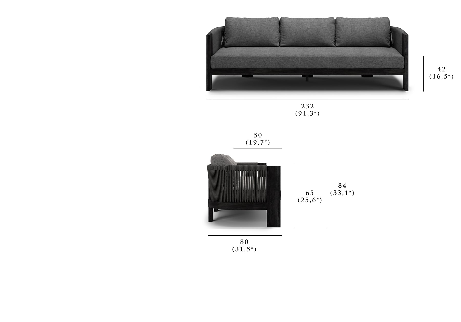 Ralph Kanepe: 232 cm x 80 cm x 65 cm