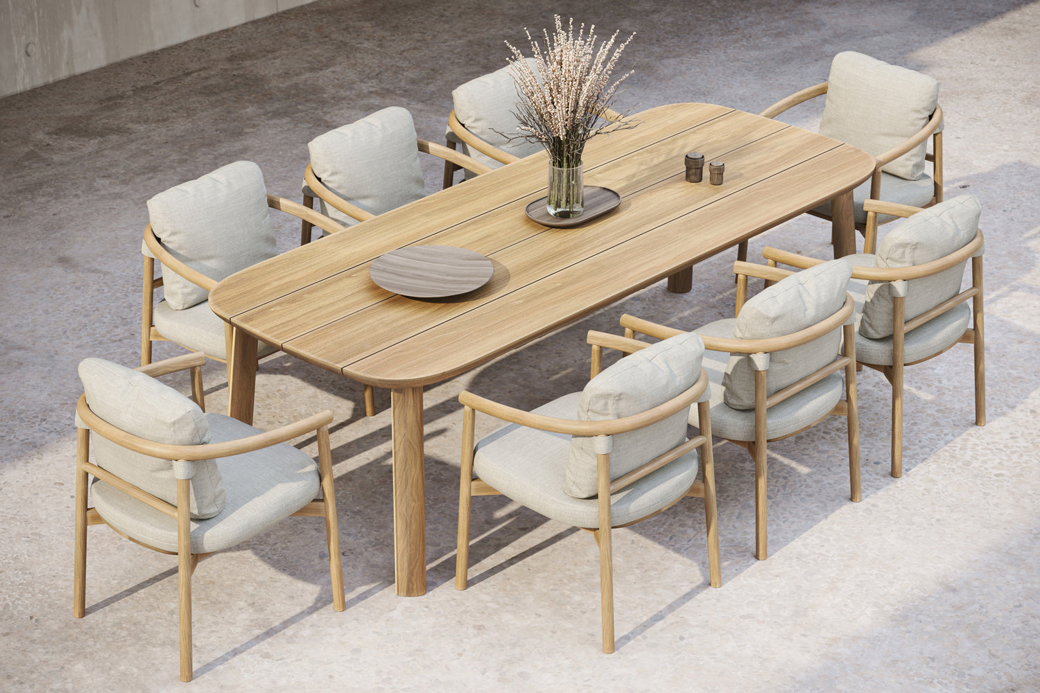 Tamamen Teak ağacından üretilen iskelet, işlevselliğini ve ergonomisini en üst düzeye çıkarmak için ince işçilikle zenginleştirilmiştir.