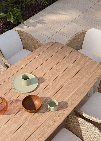 Snoc dış mekân mobilyalarının üretiminde yalnızca birinci sınıf yetiştirilen Teak ağacı kullanır. Düz damarlı yapıda olması, yüzeyinde budak veya çatlağın olmaması ve ahşabın geneline yayılan tek rengin hakimiyeti yüksek kaliteli Teak ağacının özelliklerindendir. Birinci sınıf Teak ağacı mobilyalarınız yılın her mevsiminde dışarıda kalabilir.